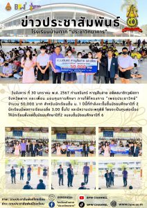 วันอังคาร ที่ 30 มกราคม พ.ศ. 2567 ท่านชรินทร์ หาญสืบสาย อดีตสมาชิกวุฒิสภา จังหวัดตาก และเพื่อน มอบทุนการศึกษา ภายใต้โครงการ “เพชรประชาวิทย์” จำนวน 50,000 บาท สำหรับนักเรียนชั้น ม. 1 ปีนี้ที่กำลังจะขึ้นชั้นมัธยมศึกษาปีที่ 2 นักเรียนมีผลการเรียนเฉลี่ย 3.00 ขึ้นไป และมีความประพฤติดี โดยจะเป็นทุนต่อเนื่อง ให้นักเรียนตั้งแต่ชั้นมัธยมศึกษาปีที่ 2 จนจบชั้นมัธยมศึกษาปีที่ 6