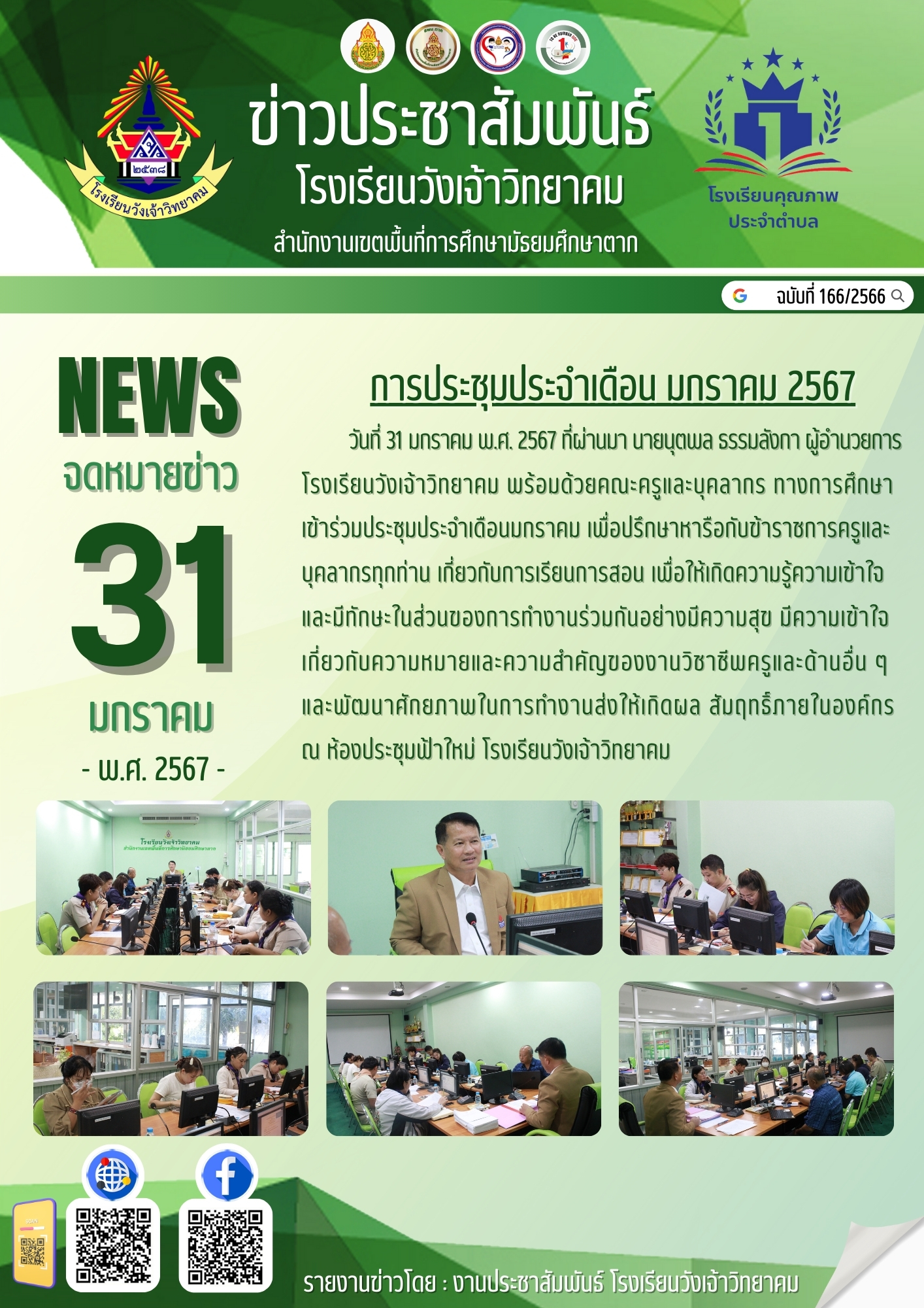 โรงเรียนวังเจ้าวิทยาคม การประชุมประจำเดือน มกราคม 2567