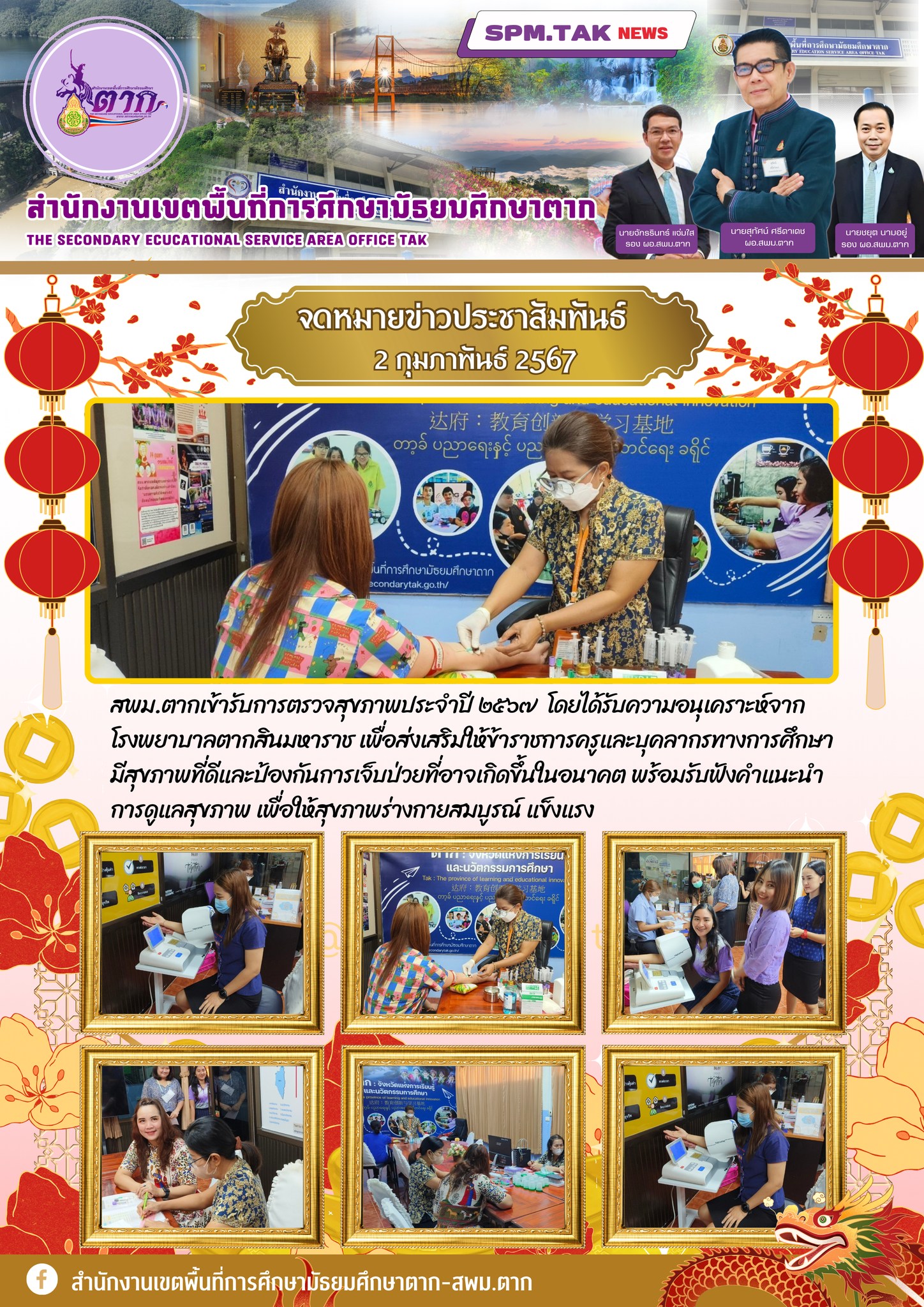 สำนักงานเขตพื้นที่การศึกษามัธยมศึกษาตาก จัดกิจกรรมตรวจสุขภาพประจำปีให้กับบุคลากรในสังกัด โดยมีวัตถุประสงค์