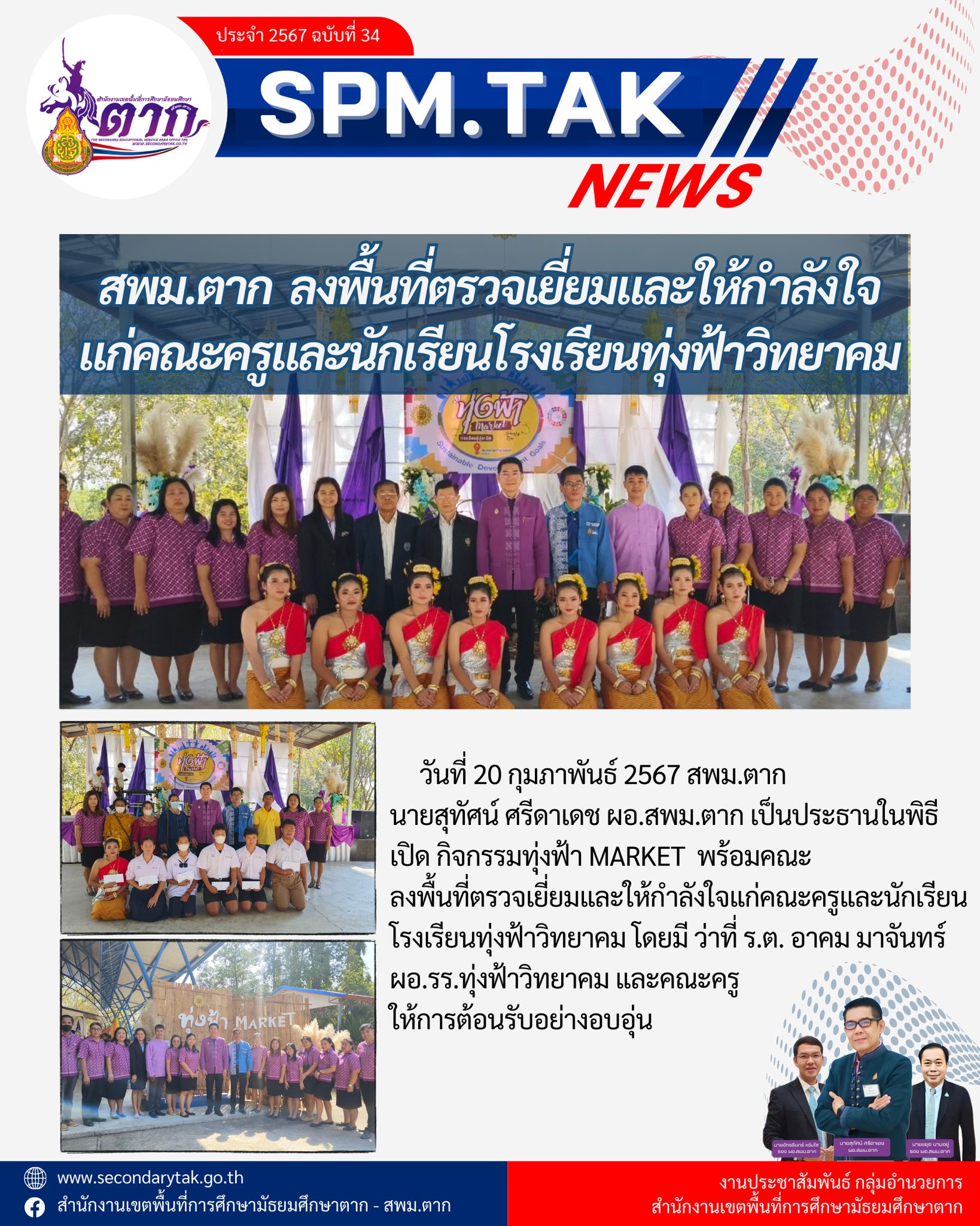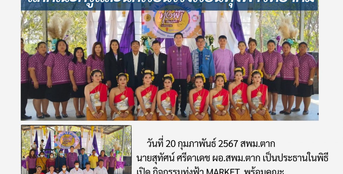 วันที่ 20 กุมภาพันธ์ 2567 สพม.ตาก นายสุทัศน์ ศรีดาเดช ผอ.สพม.ตาก เป็นประธานในพิธีเปิด กิจกรรมทุ่งฟ้า MARKET พร้อมคณะ ลงพื้นที่ตรวจเยี่ยมและให้กำลังใจแก่คณะครูและนักเรียนโรงเรียนทุ่งฟ้าวิทยาคม โดยมี ว่าที่ ร.ต. อาคม มาจันทร์ ผอ.รร.ทุ่งฟ้าวิทยาคม และคณะครู ให้การต้อนรับอย่างอบอุ่น