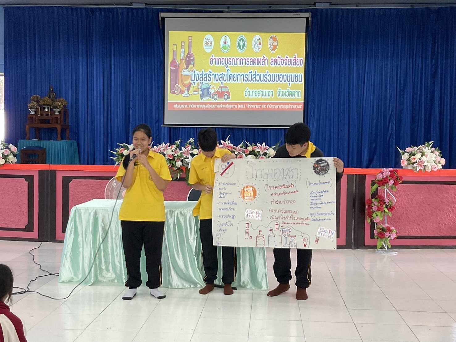 วันที่ 20 กุมภาพันธ์ 2567 นายรัติน์พงษ์ สันตติภัค ผู้อำนวยการโรงเรียนสามเงาวิทยาคมมอบหมายให้นางสาวรัชนก จินะตา ครูหัวหน้าโครงการแก้ไขปัญหายาเสพติดในสถานศึกษา นำนักเรียนที่มีอายุระหว่าง 12-15 ปี เข้าร่วมกิจกรรม “โครงการอำเภอบูรณาการลดเหล้า ลดปัจจัยเสี่ยง มุ่งสู่สร้างสุข โดยการมีส่วนร่วมของชุมชน” เพื่อเป็นการเสริมสร้างความร่วมมือเครือข่ายการคบคุมเครื่องดื่มแอลกอฮอล์ ที่เป็นปัจจัยเสี่ยงและเสริมสร้างพฤติกรรมป้องกันการดื่มเครื่องดื่มแอลกฮอล์ในเยาวชน เพื่อจำนวนลดนักดื่มหน้าใหม่ ณ หอประชุมโรงเรียนชุมชนชลประทานรังสรรค์ อำเภอสามเงา จังหวัดกตาก