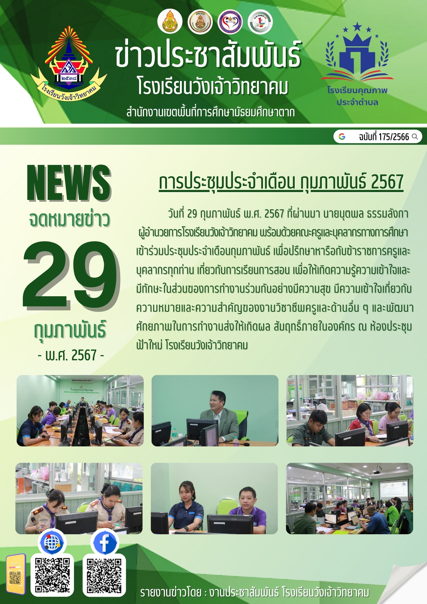 โรงเรียนวังเจ้าวิทยาคม โครงการประชาสัมพันธ์ให้กับเยาวชนรุ่นใหม่ วงศธร แตงทอง 29 กุมภาพันธ์ 2567 จำนวนคนดู 4