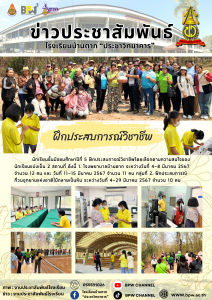 นักเรียนชั้นมัธยมศึกษาปีที่ 5 ของ โรงเรียนบ้านตาก”ประชาวิทยาคาร” เข้ารับการฝึกประสบการณ์วิชาชีพ โดยเลือกตามความสนใจของนักเรียน แบ่งเป็น 2 สถานที่ ดังนี้ กลุ่มที่ 1. โรงพยาบาลบ้านตาก ระหว่างวันที่ 4-8 มีนาคม 2567 จำนวน 12 คน และ วันที่ 11-15 มีนาคม 2567 จำนวน 11 คน และกลุ่มที่ 2. ฝึกประสบการณ์ที่วนอุทยานแห่งชาติไม้กลายเป็นหิน ระหว่างวันที่ 4-29 มีนาคม 2567 จำนวน 10 คน