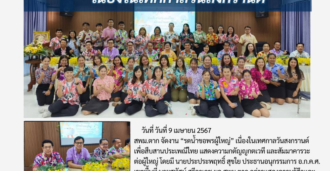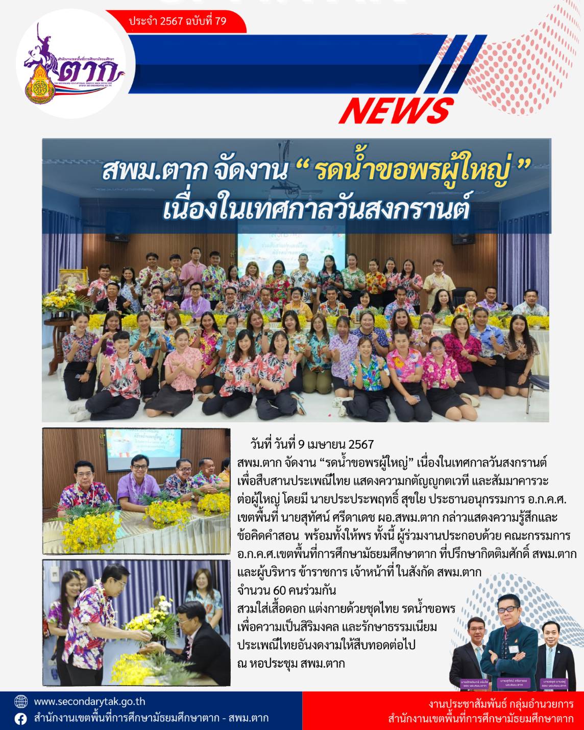 สพม.ตาก จัดงาน “ รดน้ำขอพรผู้ใหญ่ ”เนื่องในเทศกาลวันสงกรานต์ วรวุฒิ เนื้อนิ่ม 10 เมษายน 2567 จำนวนคนดู 15