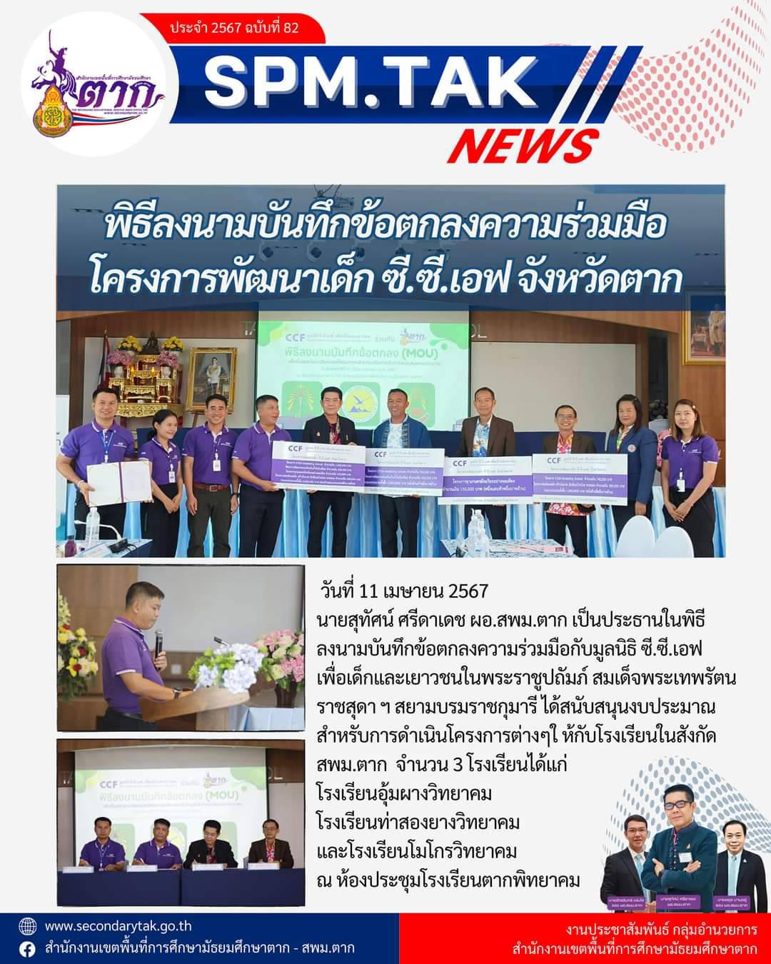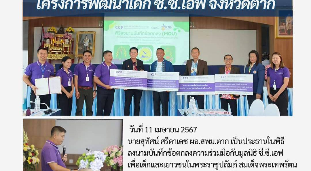 พิธีลงนามบันทึกข้อตกลงความร่วมมือ โครงการพัฒนาเด็ก ซี.ซี.เอฟ จังหวัดตาก วรวุฒิ เนื้อนิ่ม 17 เมษายน 2567 จำนวนคนดู 1