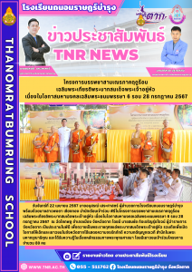 วันจันทร์ที่ 22 เมษายน 2567 นายอนุสรณ์ เสระศาสตร์ ผู้อำนวยการโรงเรียนถนอมราษฎร์บำรุง พร้อมด้วยนางสาวพอตา เชียงทอง นำนักเรียนเข้าร่วม พิธีในโครงการบรรพชาสามเณรภาคฤดูร้อนเฉลิมพระเกียรติพระบาทสมเด็จพระเจ้าอยู่หัว เนื่องในโอกาสมหามงคลเฉลิมพระชนมพรรษา 6 รอบ 28 กรกฎาคม 2567 ณ วัดโคกพลู อำเภอเมือง จังหวัดตาก โดยมี นายสมชัย กิจเจริญรุ่งโรจน์ ผู้ว่าราชการจังหวัดตาก เป็นประธานในพิธี เพื่อถวายเป็นพระราชกุศลแด่พระบาทสมเด็จพระเจ้าอยู่หัว รวมถึงเพื่อเปิดโอกาสให้เด็กและเยาวชนในจังหวัดตากได้แสดงความจงรักภักดี ความกตัญญูกตเวที สำนึกในพระมหากรุณาธิคุณ และได้รับความรู้ในเรื่องหลักธรรมทางพระพุทธศาสนา โดยมีเยาวชนเข้าร่วมโครงการจำนวน 80 คน
