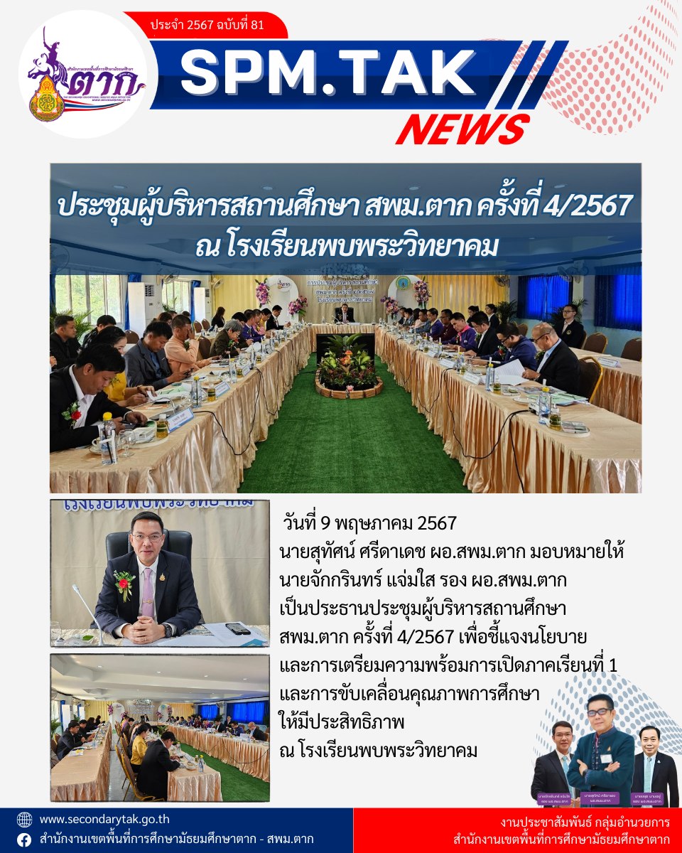 นโยบายและจุดเน้นของ สพม.ตาก ประจำปีงบประมาณ 2568-2569