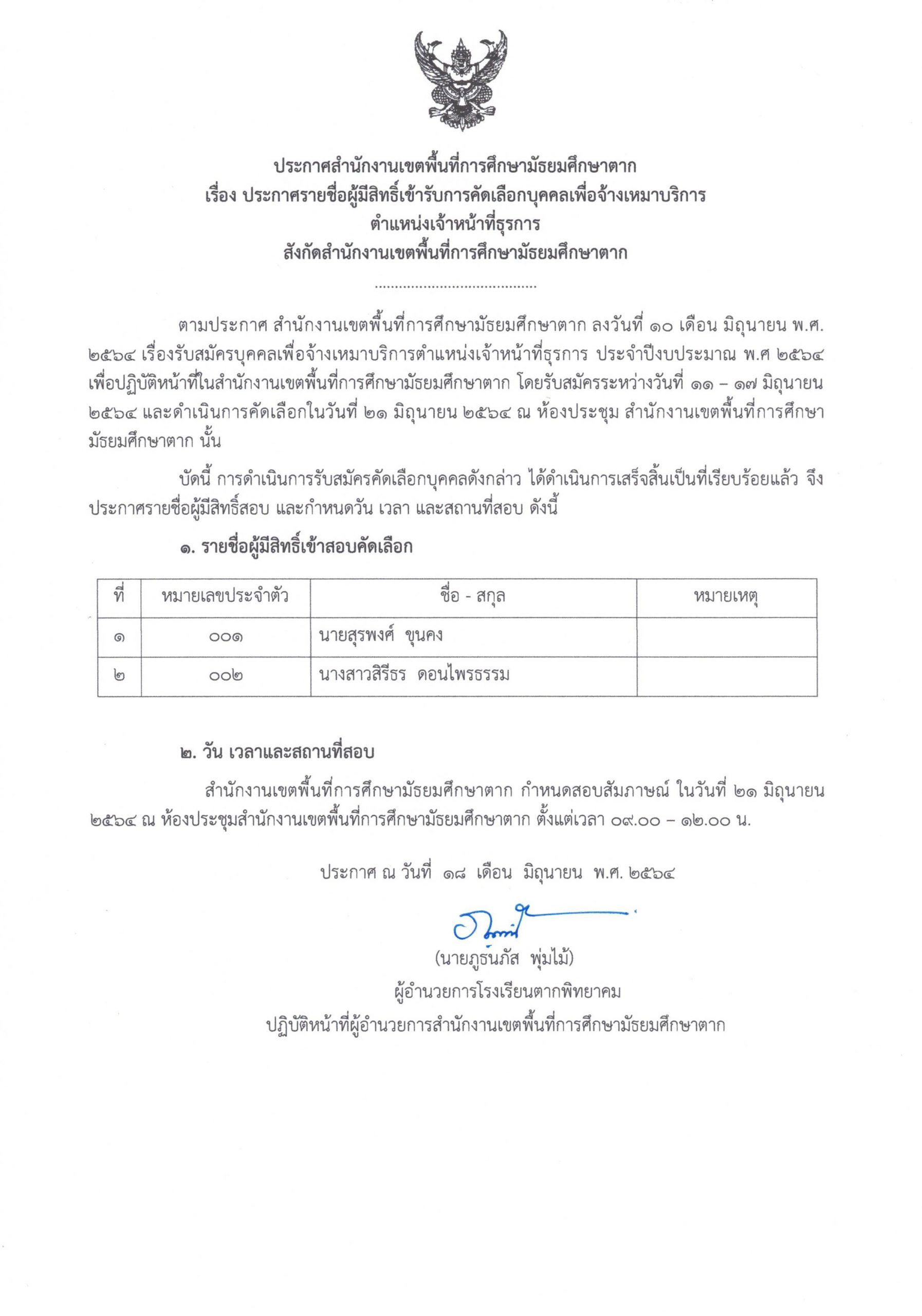 ประกาศผู้มีสิทธฺ์สอบคัดเลือก สพม.ตาก