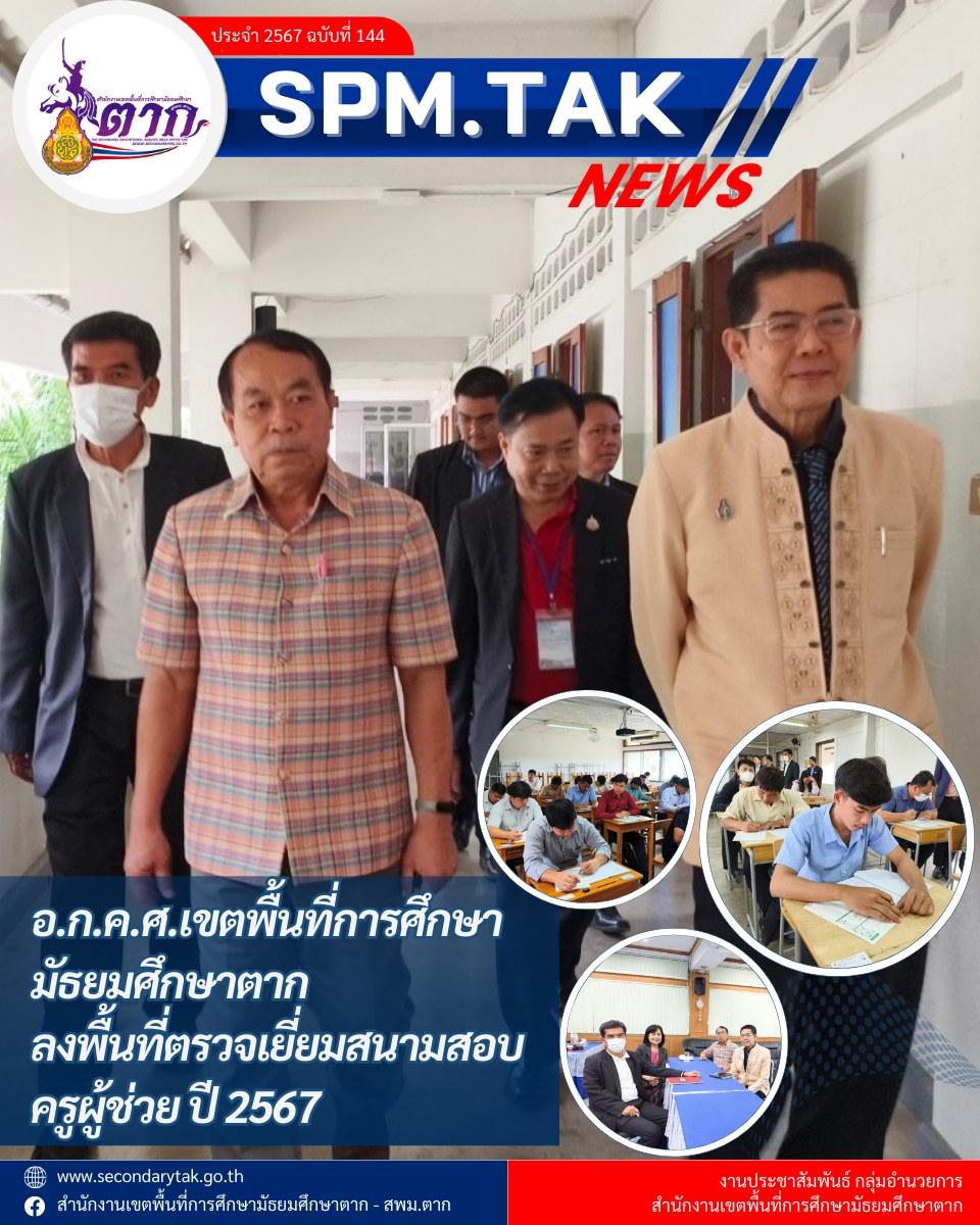 อ.ก.ค.ศ.เขตพื้นที่การศึกษามัธยมศึกษาตาก ลงพื้นที่ตรวจเยี่ยมสนามสอบครูผู้ช่วยปี 2567 วรวุฒิ เนื้อนิ่ม 10 มิถุนายน 2567 จำนวนคนดู 24