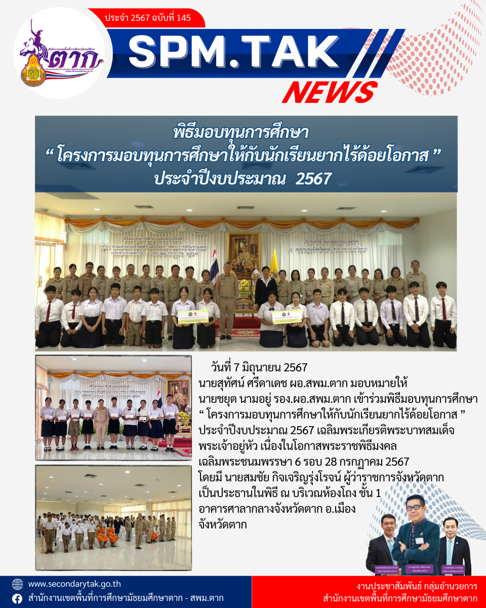 นโยบายและจุดเน้นของ สพม.ตาก ประจำปีงบประมาณ 2568-2569