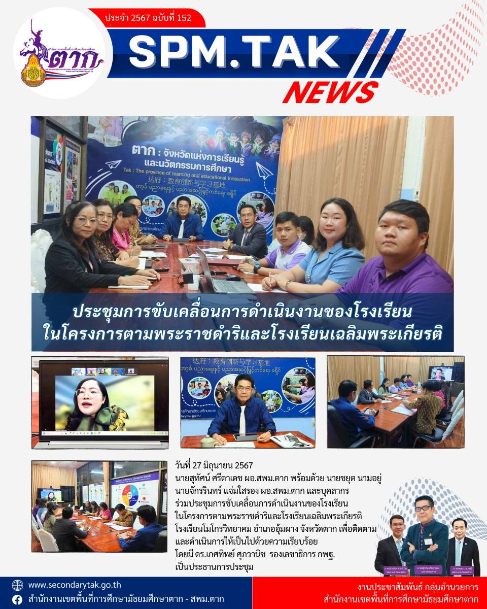 วันที่ 27 มิถุนายน 2567 นายสุทัศน์ ศรีดาเดช ผอ.สพม.ตาก พร้อมด้วย นายชยุต นามอยู่ นายจักรรินทร์ แจ่มใส รอง ผอ.สพม.ตาก และบุคลากร ร่วมประชุมการขับเคลื่อนการดำเนินงานของโรงเรียนในโครงการตามพระราชดำริและโรงเรียนเฉลิมพระเกียรติ โรงเรียนโมโกรวิทยาคม อำเภออุ้มผาง จังหวัดตาก เพื่อติดตามและดำเนินการให้เป็นไปด้วยความเรียบร้อย โดยมี ดร.เกศทิพย์ ศุภวานิช รองเลขาธิการ กพฐ. เป็นประธานการประชุม