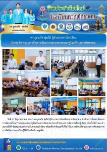 วันที่ 27 มิถุนายน พ.ศ. 2567 ดร.ภูธนภัส พุ่มไม้ ผู้อำนวยการโรงเรียนตากพิทยาคม ดำเนินการนิเทศ ติดตาม การจัดการเรียนการสอนของคณะครูโรงเรียนตากพิทยาคม โดยเข้าสังเกตการจัดการเรียนรู้เชิงรุก อีกทั้งให้คำแนะนำ แนวปฏิบัติ ข้อเสนอแนะต่าง ๆ กับครูและนักเรียน พร้อมทั้งนำข้อมูลที่ได้ไปใช้ในการขับเคลื่อนและยกระดับคุณภาพการจัดกิจกรรมการเรียนรู้ให้มีประสิทธิภาพสูงขึ้น