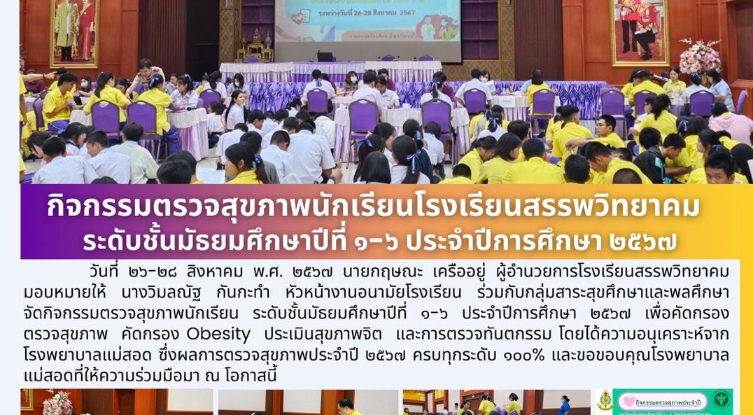 โรงเรียนสรรพวิทยาคม : รับการตรวจสุขภาพประจำปีจากโรงพยาบาลแม่สอด นิรมล พิพัฒน์คุปติกุล 30 สิงหาคม 2567 จำนวนคนดู 0