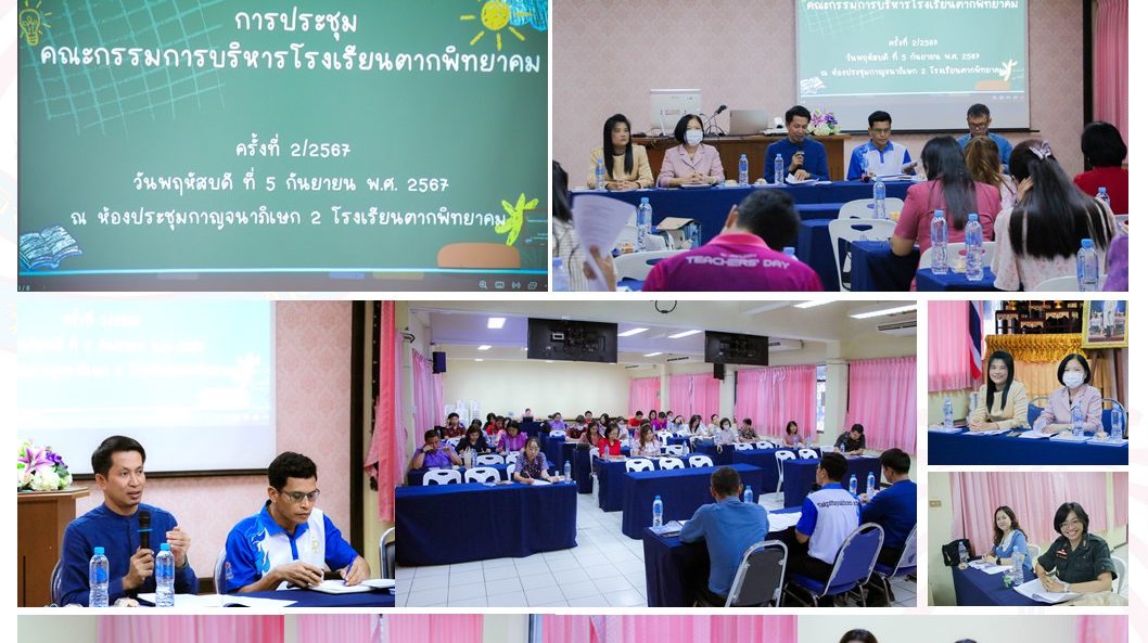 วันที่ 5 กันยายน พ.ศ. 2567 ดร.ภูธนภัส พุ่มไม้ ผู้อำนวยการโรงเรียนตากพิทยาคม พร้อมด้วยนางภัทราภรณ์ เนื้อไม้ นายเสรี พรหมแก้ว นายอภิศักดิ์ เทียมฉันท์ และนางสาวณัฐธิดา ทิอุด รองผู้อำนวยการโรงเรียน เป็นประธานในการประชุมคณะกรรมการบริหารโรงเรียน ครั้งที่ 2/2567 ณ ห้องประชุมกาญจนาภิเษก 2 โรงเรียนตากพิทยาคม