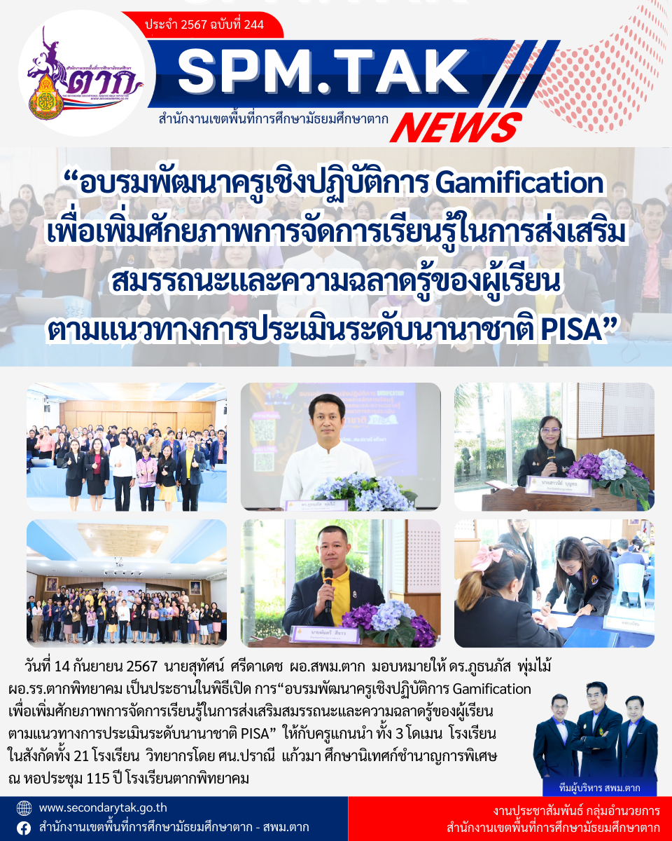 “อบรมพัฒนาครูเชิงปฏิบัติการ Gamification เพื่อเพิ่มศักยภาพการจัดการเรียนรู้ในการส่งเสริมสมรรถนะและความฉลาดรู้ของผู้เรียนตามแนวทางการประเมินระดับนานาชาติ PISA” วรวุฒิ เนื้อนิ่ม 17 กันยายน 2567 จำนวนคนดู 4