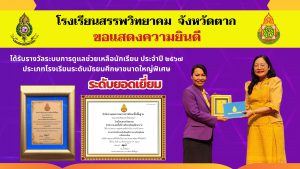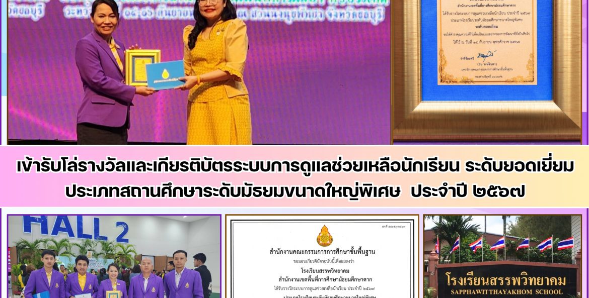 โรงเรียนสรรพวิทยาคม : เข้ารับโล่รางวัลและเกียรติบัตรระบบการดูแลช่วยเหลือนักเรียน ระดับยอดเยี่ยม ประจำปี ๒๕๖๗ ประเภทสถานศึกษาระดับมัธยมขนาดใหญ่พิเศษ จากรองเลขาธิการคณะกรรมการการศึกษาขั้นพื้นฐาน นิรมล พิพัฒน์คุปติกุล 18 กันยายน 2567 จำนวนคนดู 7