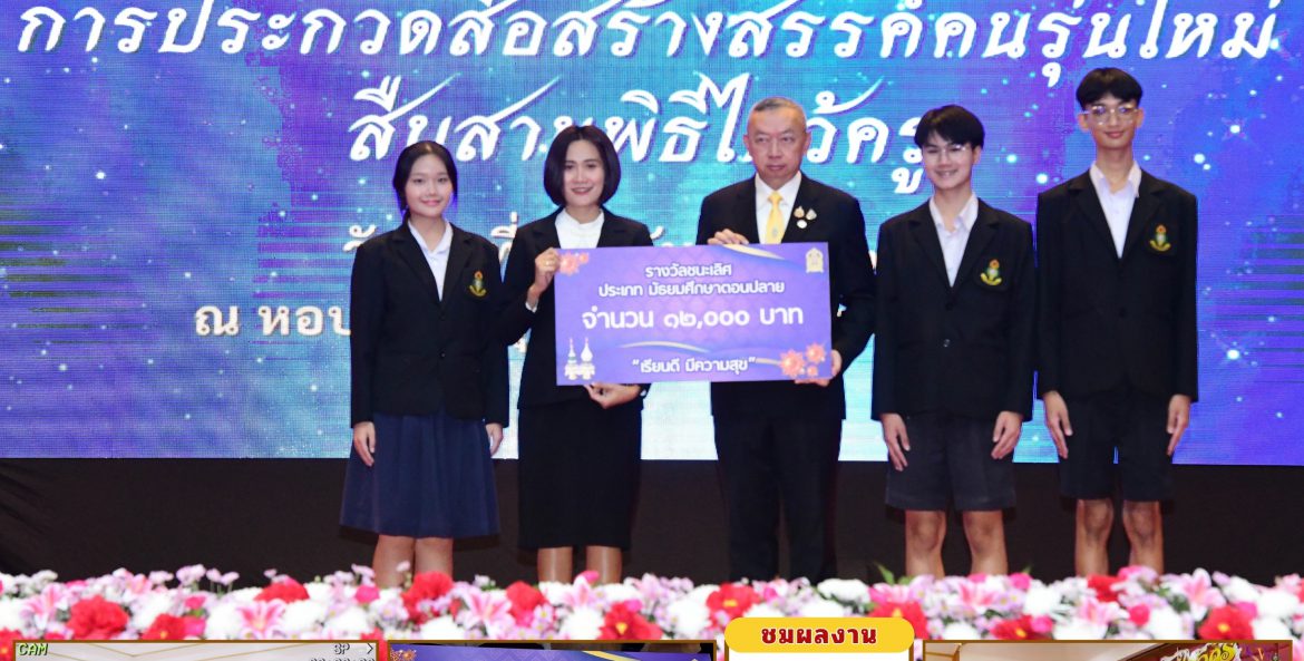 โรงเรียนสรรพวิทยาคม : คณะกรรมการนักเรียน ปีการศึกษา ๒๕๖๗ ได้รับรางวัลชนะเลิศ ระดับมัธยมศึกษาตอนปลาย ในการประกวดสื่อสร้างสรรค์คนรุ่นใหม่สืบสานพิธีไหว้ครู นิรมล พิพัฒน์คุปติกุล 25 กันยายน 2567 จำนวนคนดู 9