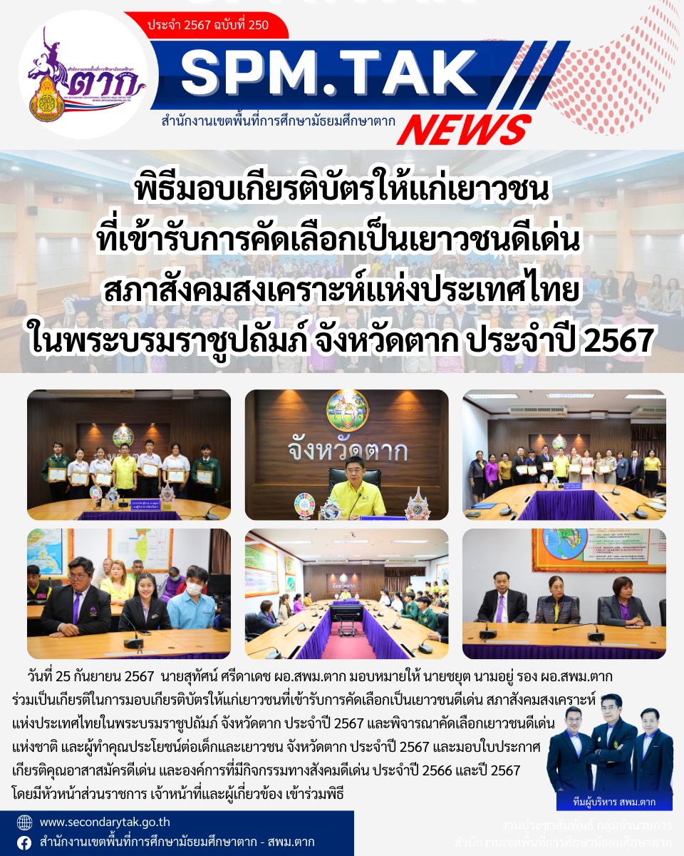 คัดเลือกเป็นเยาวชนดีเด่น สภาสังคมสงเคราะห์แห่งประเทศไทย