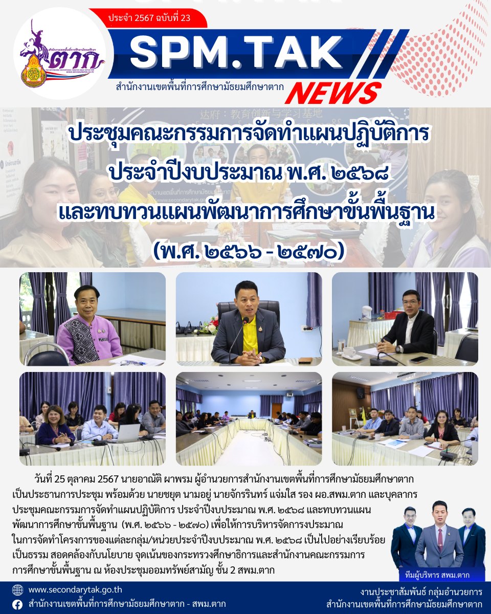 ประชุมคณะกรรมการจัดทำแผนปฏิบัติการ ประจำปิ๊งบประมาณ พ.ศ. ๒๕๖๘ และทบทวนแผนพัฒนาการศึกษาชั้นพื้นฐาน (พ.ศ. ๒๕๖๖ – ๒๕๗๐) วรวุฒิ เนื้อนิ่ม 28 ตุลาคม 2567 จำนวนคนดู 14
