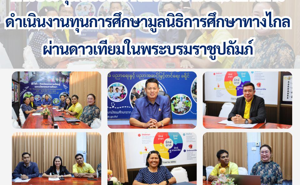 วันที่ 30 ตุลาคม 2567 นายอาณัติ ผาพรม ผู้อำนวยการสำนักงานเขตพื้นที่การศึกษามัธยมศึกษาตาก พร้อมด้วย นายจักรรินทร์ แจ่มใส รอง ผอ.สพม.ตาก และคณะ เข้าร่วมการประชุมรับฟังการชี้แจงสร้างความเข้าใจแนวทางการดำเนินงานทุนการศึกษามูลนิธิการศึกษาทางไกลผ่านดาวเทียมในพระบรมราชูปถัมภ์ เนื่องในโอกาสมหามงคลเฉลิมพระชนมพรรษาพระบาทสมเด็จพระเจ้าอยู่หัวทรงเจริญพระชนมพรรษา 6 รอบ 28 กรกฎาคม 2567 ร่วมกับมูลนิธิการศึกษาทางไกลผ่านดาวเทียมในพระบรมราชูปถัมภ์ ผ่านระบบ Zoom Meeting ณ ห้องประชุมลานสาง สพม.ตาก