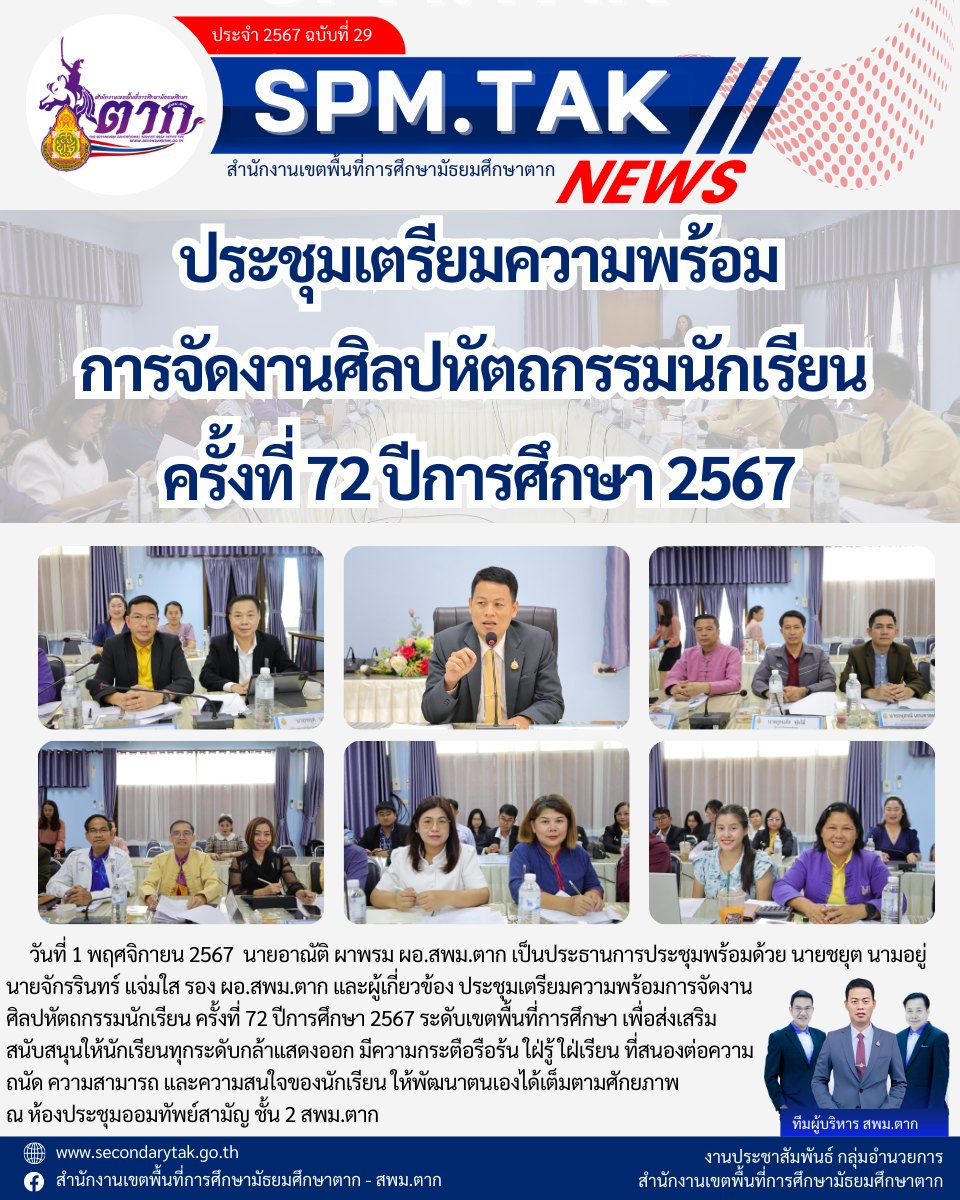 ประชุมเตรียมความพร้อม การจัดงานศิลปหัตถกรรมนักเรียน ครั้งที่ 72 ปีการศึกษา 2567 วรวุฒิ เนื้อนิ่ม 1 พฤศจิกายน 2567 จำนวนคนดู 123