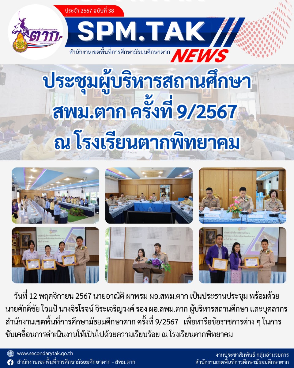 ประชุมผู้บริหารสถานศึกษา สพม.ตาก ครั้งที่ 9/2567 ณโรงเรียนตากพิทยาคม วรวุฒิ เนื้อนิ่ม 13 พฤศจิกายน 2567 จำนวนคนดู 13