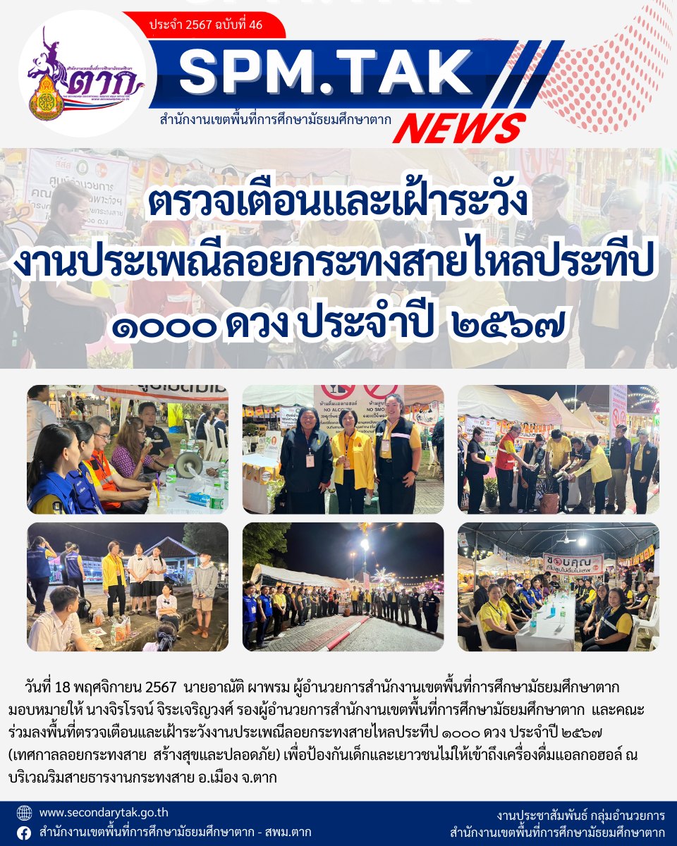 ตรวจเตือนและเฝ้าระวัง งานประเพณีลอยกระทงสายไหลประทีป ๑๐๐๐ ดวง ประจำปี ๒๕๖๗ วรวุฒิ เนื้อนิ่ม 19 พฤศจิกายน 2567 จำนวนคนดู 4