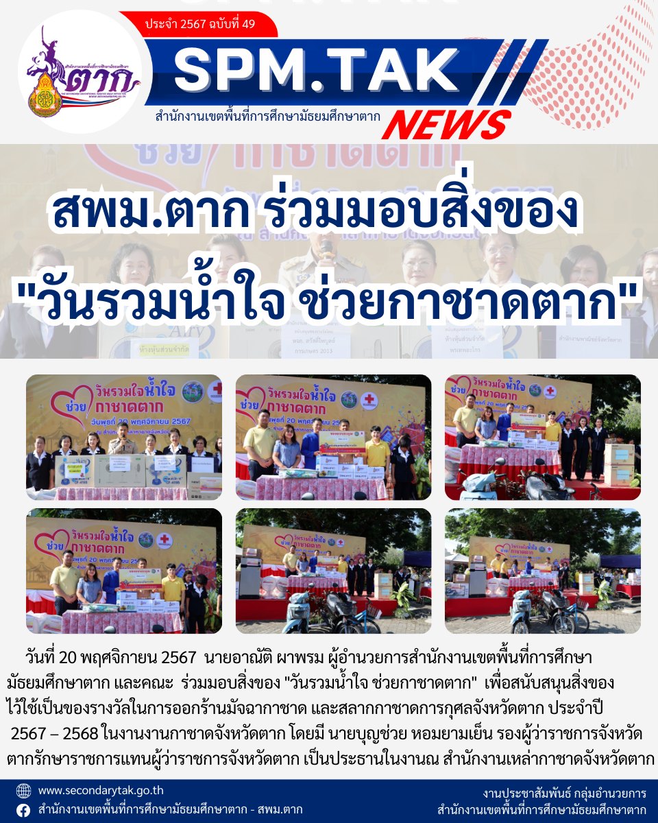 สพม.ตาก ร่วมมอบสิ่งของ “วันรวมน้ำใจ ช่วยกาชาดตาก”