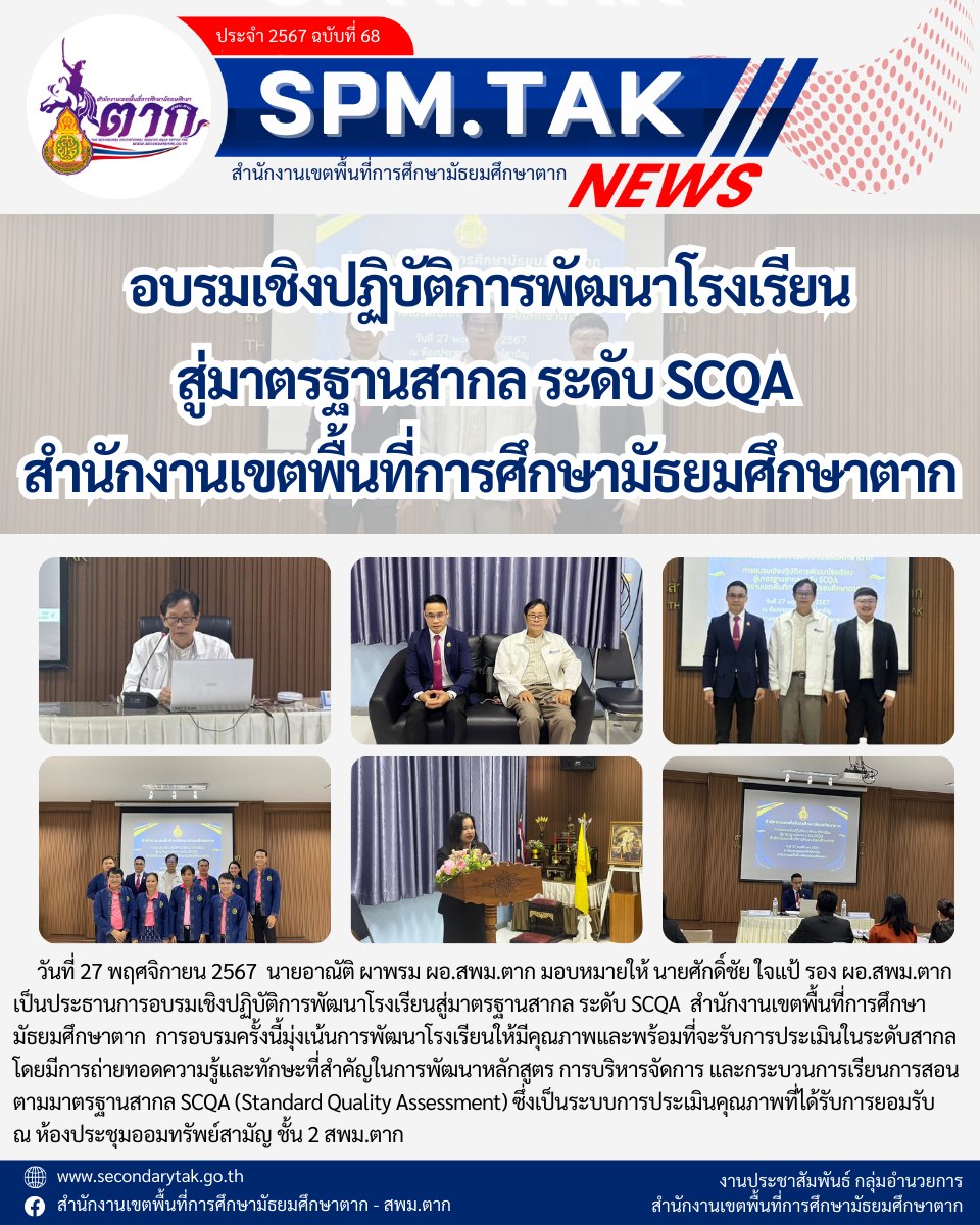 อบรมเชิงปฏิบัติการพัฒนาโรงเรียน สู่มาตรฐานสากล ระดับ SCQA วรวุฒิ เนื้อนิ่ม 28 พฤศจิกายน 2567 จำนวนคนดู 2