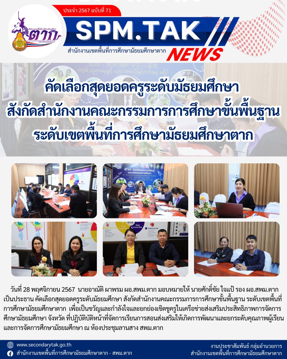 คัดเลือกสุดยอดครูระดับมัธยมศึกษา สังกัดสำนักงานคณะกรรมการการศึกษาขั้นพื้นฐาน ระดับเขตพื้นที่การศึกษามัธยมศึกษาตาก วรวุฒิ เนื้อนิ่ม 29 พฤศจิกายน 2567 จำนวนคนดู 164