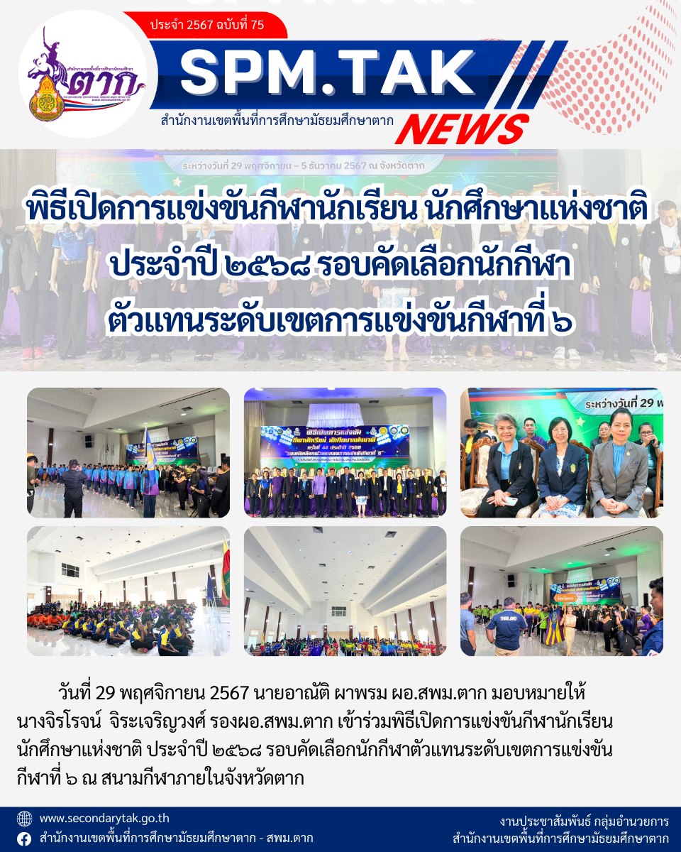 พิธีเปิดการแข่งขันกีฬานักเรียน นักศึกษาแห่งชาติ ประจำปี ๒๕๖๘ รอบคัดเลือกนักกีฬา ตัวแทนระดับเขตการแข่งขันกีฬาที่ ๖ วรวุฒิ เนื้อนิ่ม 30 พฤศจิกายน 2567 จำนวนคนดู 4
