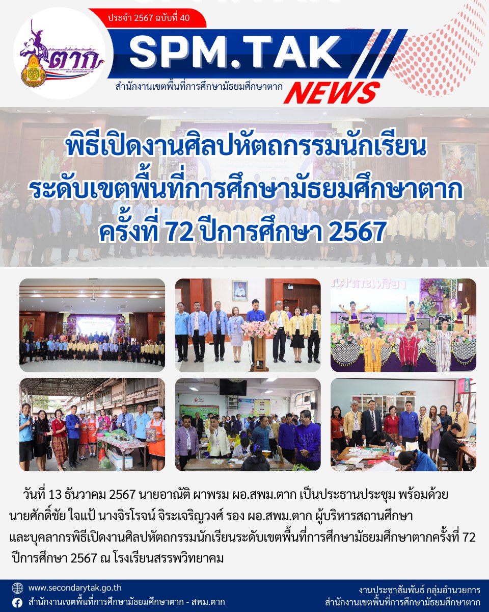 พิธีเปิดงานศิลปหัตถกรรมนักเรียน ระดับเขตพื้นที่การศึกษามัธยมศึกษาตาก ครั้งที่ 72 ปีการศึกษา 2567 วรวุฒิ เนื้อนิ่ม 16 ธันวาคม 2567 จำนวนคนดู 14