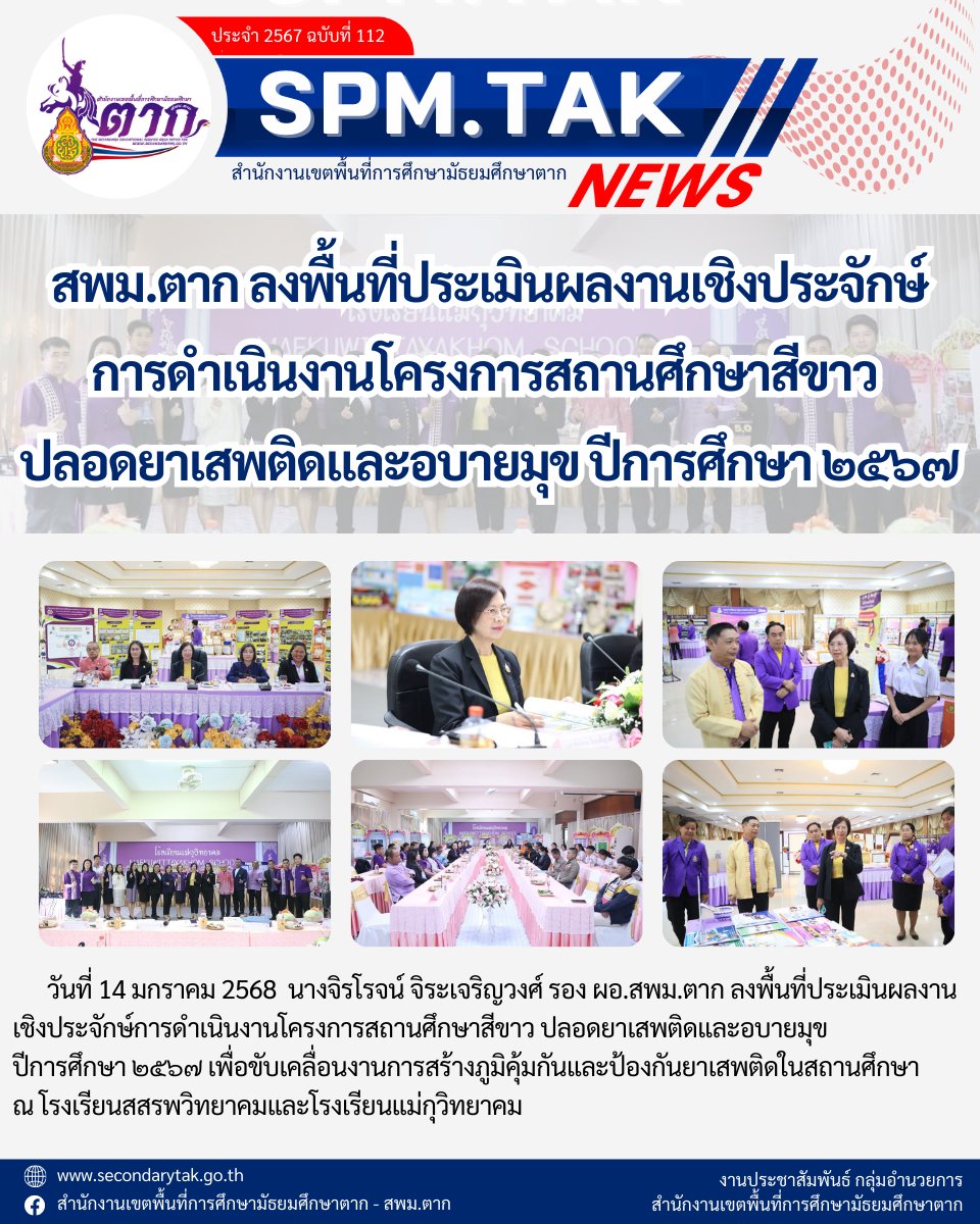 สพม.ตาก ลงพื้นที่ประเมินผลงานเชิงประจักษ์ การดำเนินงานโครงการสถานศึกษาสีขาว ปลอดยาเสพติดและอบายมุข ปีการศึกษา ๒๕๖๗ วรวุฒิ เนื้อนิ่ม 15 มกราคม 2568 จำนวนคนดู 2