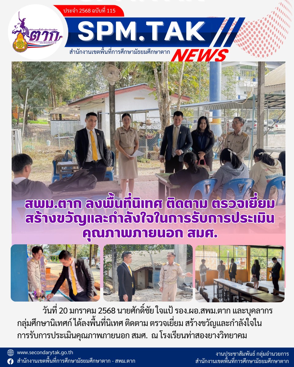 สพม.ตาก ลงพื้นที่นิเทศ ติดตาม ตรวจเยี่ยม สร้างขวัญและกำลังใจในการรับการปรประเมิน คุณภาพภายนอก สมศ. โรงเรียนท่าสองยางวิทยาคม วรวุฒิ เนื้อนิ่ม 21 มกราคม 2568 จำนวนคนดู 4