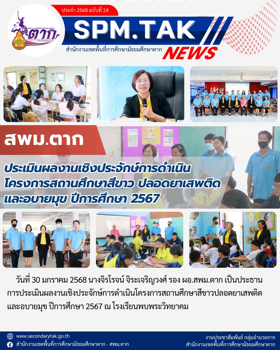สพม.ตาก ประเมินผลงานเชิงประจักษ์การดำเนิน โครงการสถานศึกษาสีขาว ปลอดยาเสพติด และอบายมุข ปีการศึกษา 2567 วรวุฒิ เนื้อนิ่ม 31 มกราคม 2568 จำนวนคนดู 1