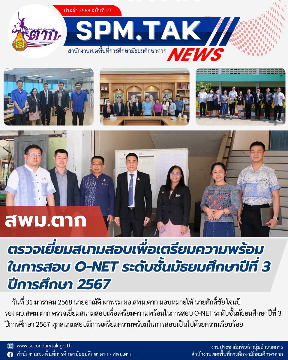 ตรวจเยี่ยมสนามสอบเพื่อเตรียมความพร้อม ในการสอบ O-NET ระดับชั้นมัรยมศึกษาปีที่ 3 ปีการศึกษา 2567 วรวุฒิ เนื้อนิ่ม 3 กุมภาพันธ์ 2568 จำนวนคนดู 2