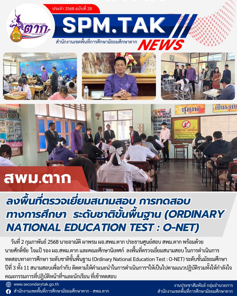 ตรวจเยี่ยมสนามสอบเพื่อเตรียมความพร้อม ในการสอบ O-NET ระดับชั้นมัรยมศึกษาปีที่ 3 ปีการศึกษา 2567