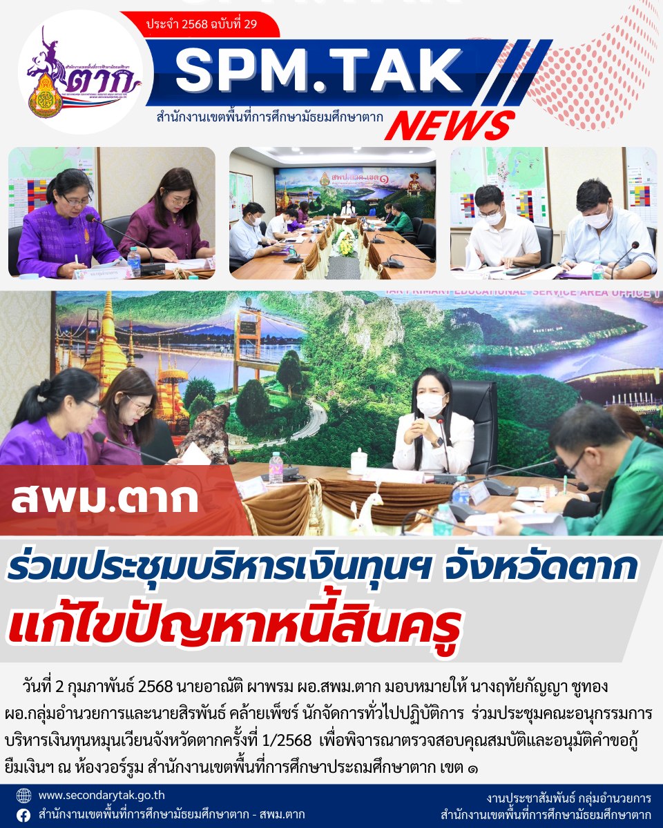 ร่วมประชุมบริหารเงินทุนฯ จังหวัดตาก แก้ไขปัญหาหนี้สินครู วรวุฒิ เนื้อนิ่ม 4 กุมภาพันธ์ 2568 จำนวนคนดู 2