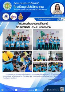โรงเรียนแม่ปะวิทยาคม : เข้าร่วมโครงการค่ายเยาวชนสร้างชาติ REUNION NBI – Youth จังหวัดตาก ฐานิช จันทร์ต๊ะ 5 กุมภาพันธ์ 2568 นางทองเพียร วาทา ผู้อำนวยการโรงเรียนแม่ปะวิทยาคม มอบหมายให้ นายเกรียงศักดิ์ จั้วกี่ นำตัวแทนนักเรียนร่วมอบรมโครงการค่ายเยาวชนสร้างชาติ REUNION NBl – Youth จังหวัดตาก ณ โรงเรียนบ้านตาก “ประชาวิทยาคาร” อำเภอบ้านตาก จังหวัดตาก จำนวนคนดู 1