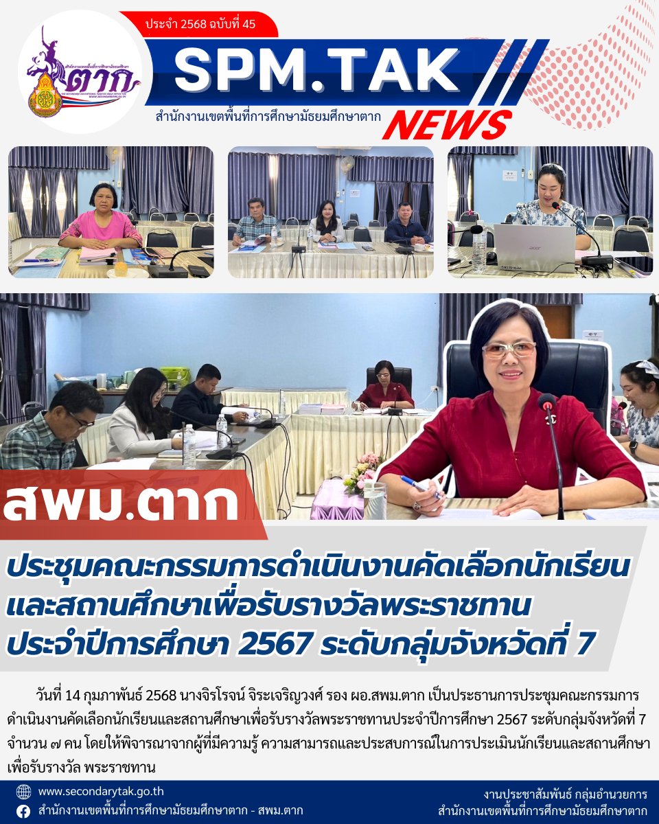 ประชุมคณะกรรมการดำเนินงานคัดเลือกนักเรียน และสถานศึกษาเพื่อรับรางวัลพระราชทาน ประจำปีการศึกษา 2567 ระดับกลุ่มจังหวัดที่ 7 วรวุฒิ เนื้อนิ่ม 15 กุมภาพันธ์ 2568 จำนวนคนดู 1