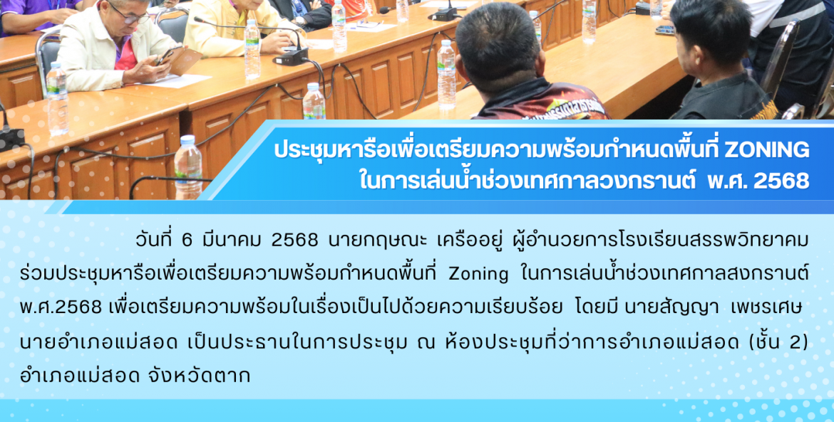 โรงเรียนสรรพวิทยาคม : ประชุมหารือเพื่อเตรียมความพร้อมกำหนดพื้นที่ ZONING ในการเล่นน้ำช่วงเทศกาลสงกรานต์ พ.ศ. #*(_ นิรมล พิพัฒน์คุปติกุล 9 มีนาคม 2568 จำนวนคนดู 3