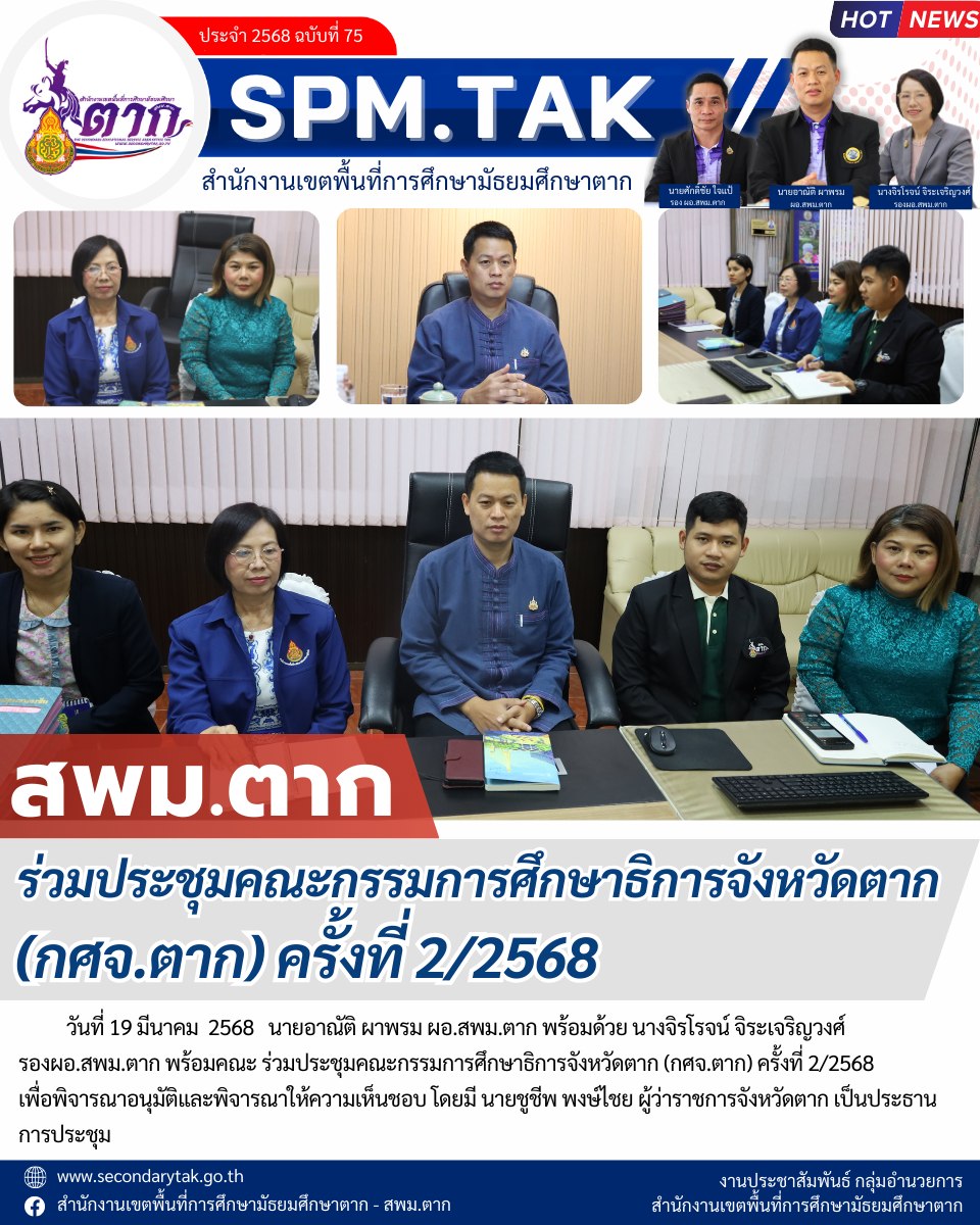 ร่วมประชุมคณะกรรมการศึกษาธิการจังหวัดตาก(กศจ.ตาก) ครั้งที่ 2/2568 วรวุฒิ เนื้อนิ่ม 20 มีนาคม 2568 จำนวนคนดู 4