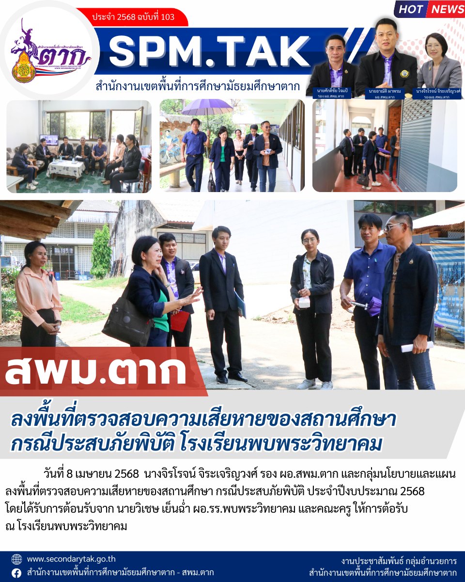 ลงพื้นที่ตรวจสอบความเสียหายของสถานศึกษา รร.พบพระวิทยาคม