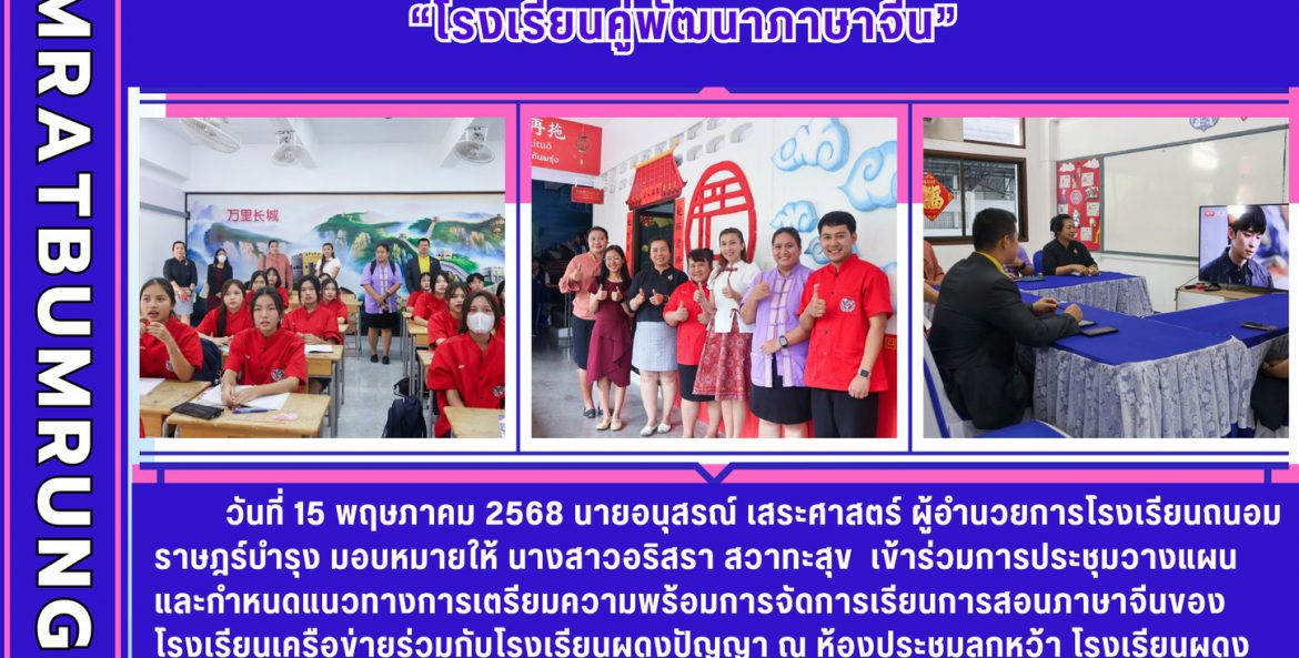 วันที่ 15 พฤษภาคม 2568 นายอนุสรณ์ เสระศาสตร์ ผู้อำนวยการโรงเรียนถนอมราษฎร์บำรุง มอบหมายให้ นางสาวอริสรา สวาทะสุข เข้าร่วมการประชุมวางแผน และกำหนดแนวทางการเตรียมความพร้อมการจัดการเรียนการสอนภาษาจีนของ โรงเรียนเครือข่ายร่วมกับโรงเรียนผดุงปัญญา ณ ห้องประชุมลูกหว้า โรงเรียนผดุงปัญญา อำเภอเมืองตาก จังหวัดตาก
