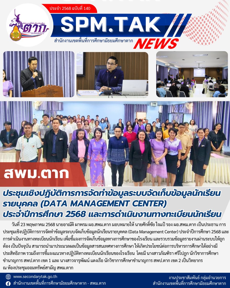 ประชุมเชิงปฏิบัติการการจัดท่าข้อมูลระบบจัดเก็บข้อมูลนักเรียบ รายบุคคล (DATA MANAGEMENT CENTER) ประจำปีการศึกษา 2568 และการดำเนินงานทางทะเบียนนักเรียน วรวุฒิ เนื้อนิ่ม 26 พฤษภาคม 2568 จำนวนคนดู 5