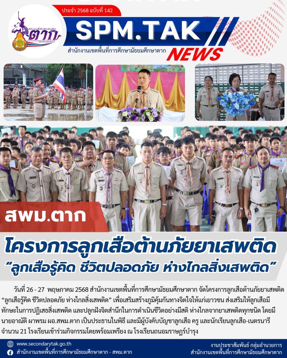 โครงการลูกเสือต้านภัยยาเสพติด “ลูกเสือรู้คิด ชีวิตปลอดภัย ห่างไกลสิ่งเสพติด” วรวุฒิ เนื้อนิ่ม 28 พฤษภาคม 2568 จำนวนคนดู 2