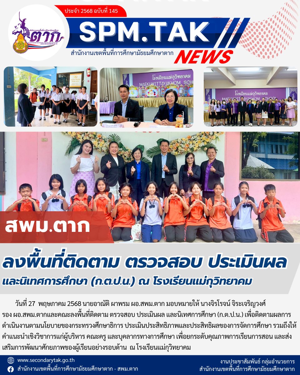 ลงพื้นที่ติดตาม ตรวจสอบ ประเมินผล และนิเทศการศึกษา (ก.ต.ป.น.) ณ โรงเรียนแม่กุวิทยาคม วรวุฒิ เนื้อนิ่ม 28 พฤษภาคม 2568 จำนวนคนดู 2