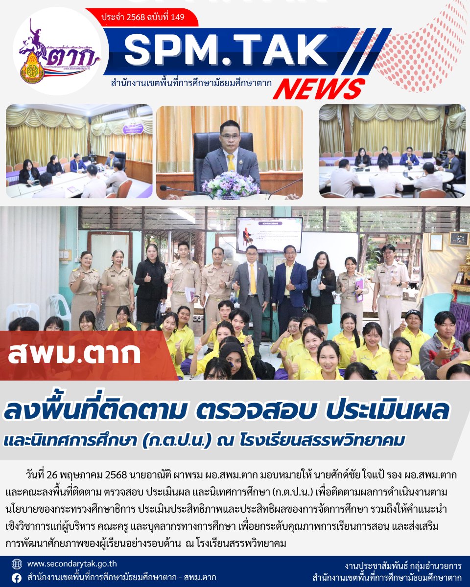 ลงพื้นที่ติดตาม ตรวจสอบ ประเมินผล และนิเทศการศึกษา (ก.ต.ป.น.) ณ โรงเรียนสรรพวิทยาคม วรวุฒิ เนื้อนิ่ม 27 พฤษภาคม 2568 จำนวนคนดู 1