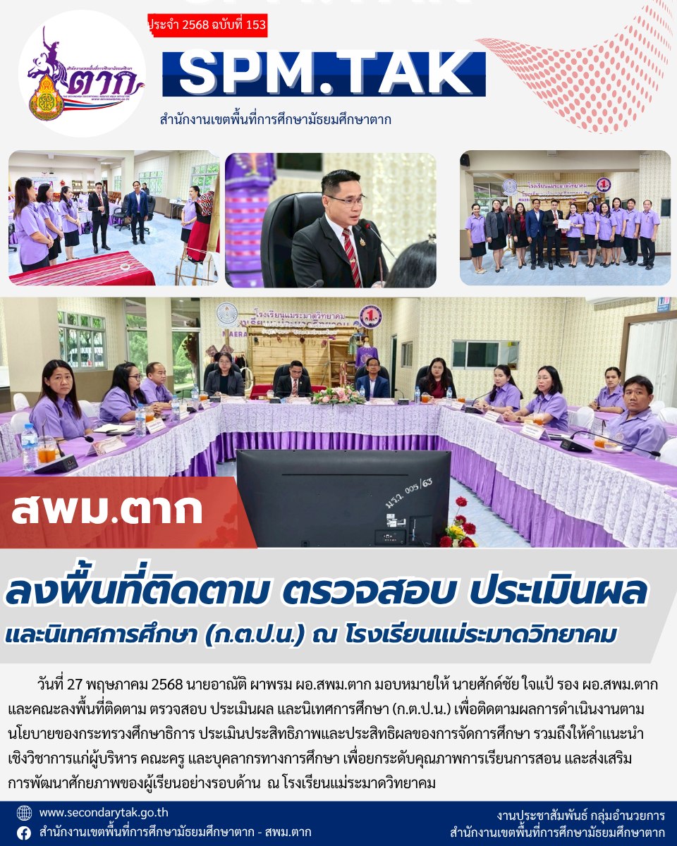 ลงพื้นที่ติดตาม ตรวจสอบ ประเมินผล และนิเทศการศึกษา (ก.ต.ป.น.) ณ โรงเรียนแม่ระมาดวิทยาคม วรวุฒิ เนื้อนิ่ม 28 พฤษภาคม 2568 จำนวนคนดู 2