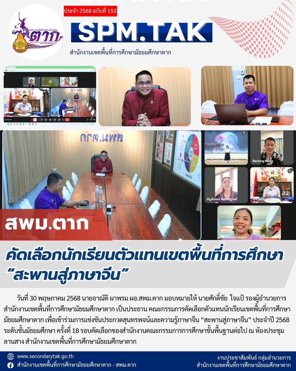คัดเลือกนักเรียนตัวแทนเขตพื้นที่การศึกษา “สะพานสู่ภาษาจีน” วรวุฒิ เนื้อนิ่ม 30 พฤษภาคม 2568 จำนวนคนดู 2